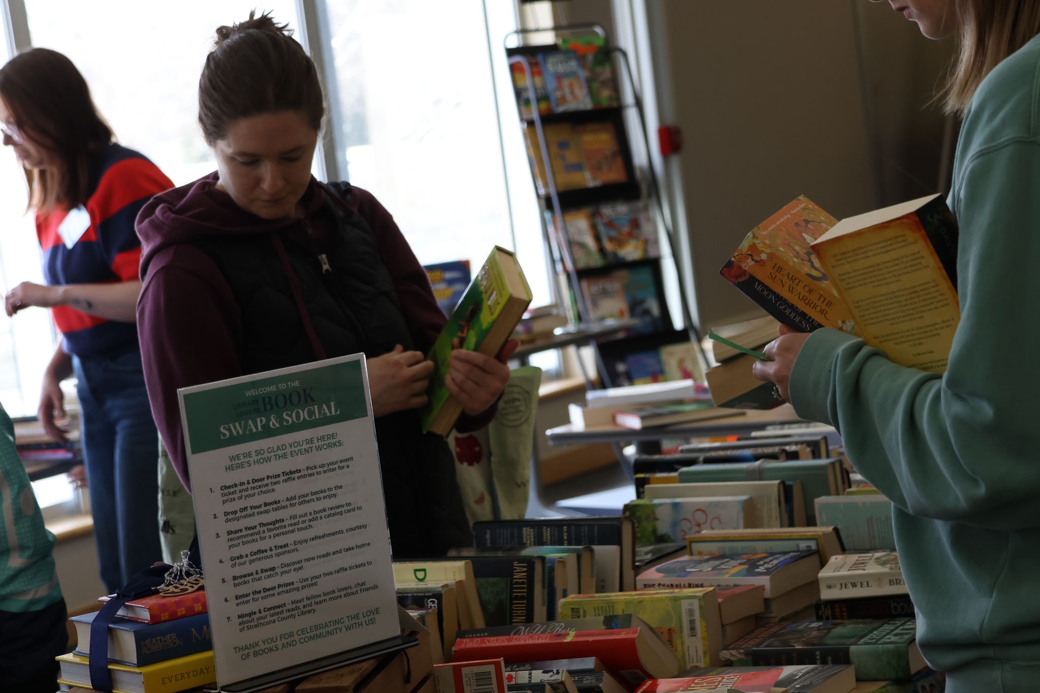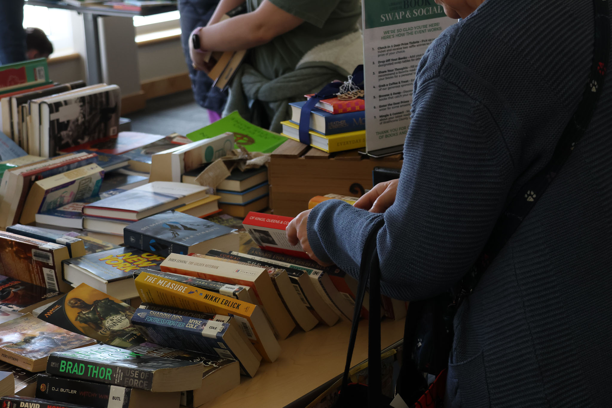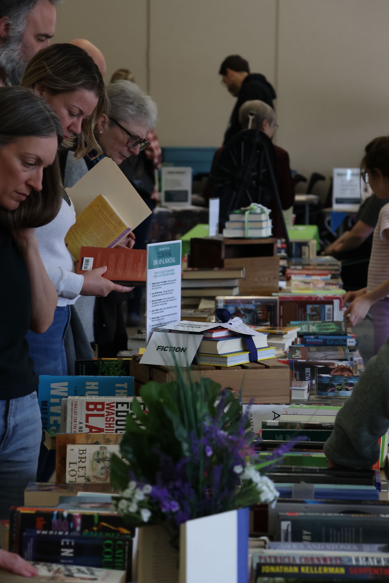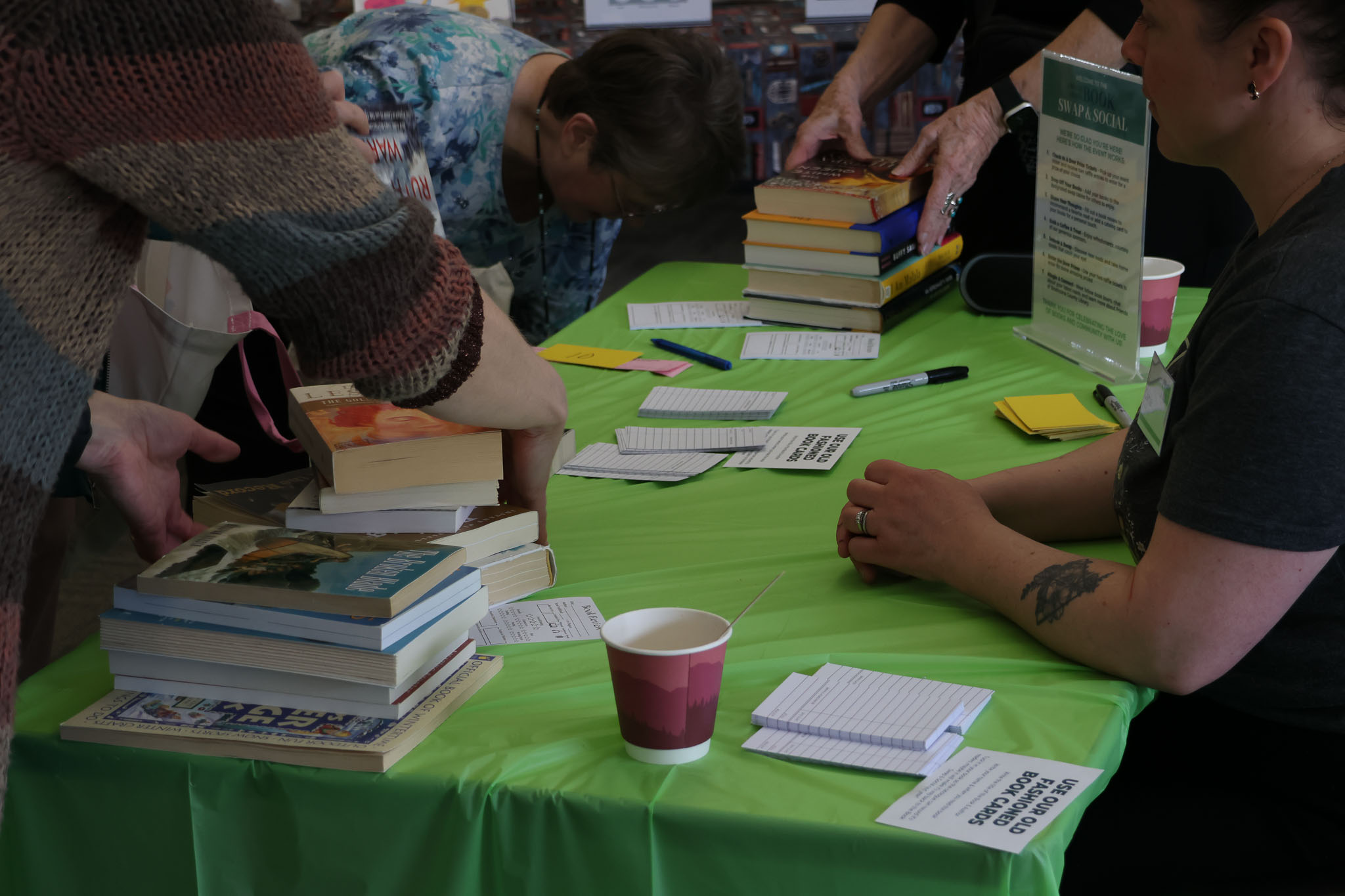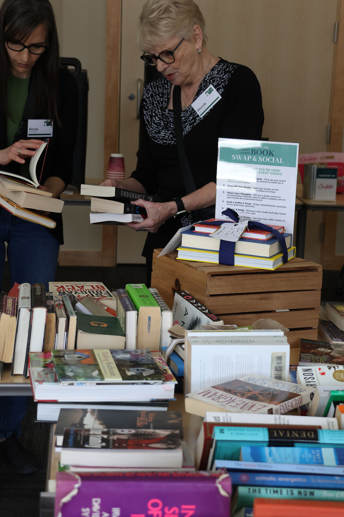 - A guest saying they were in no rush to leave because the books kept circulating. They said they could browse again and again and find something new.