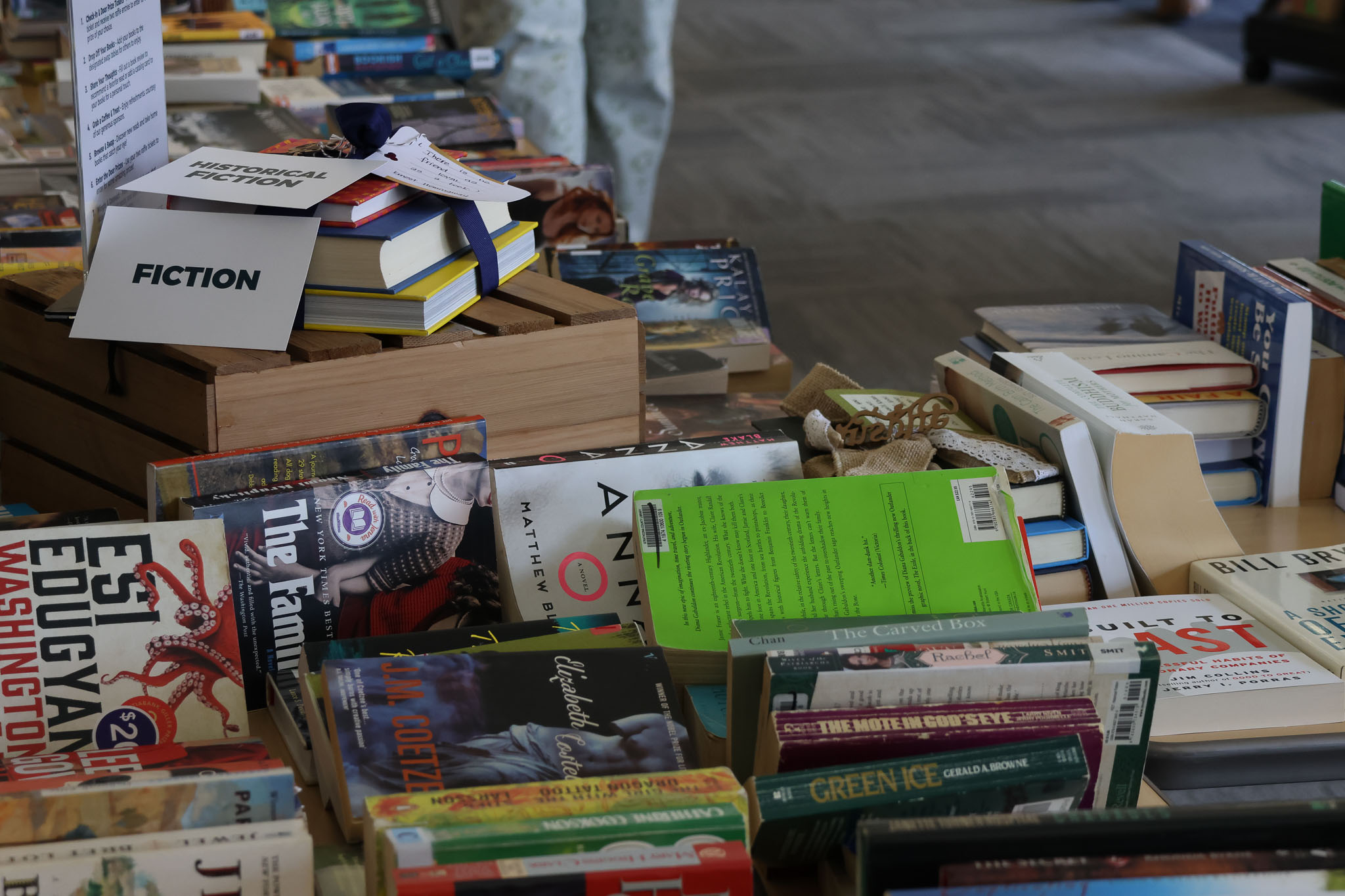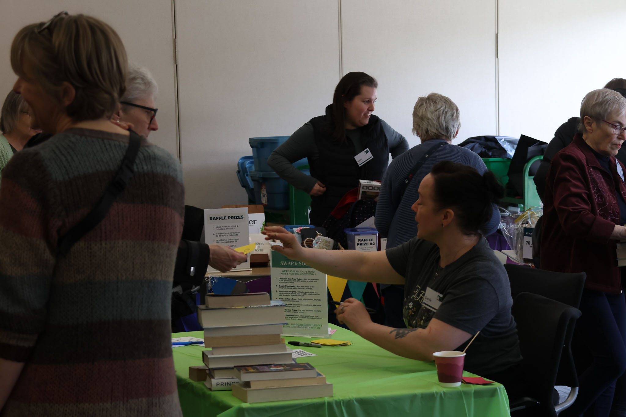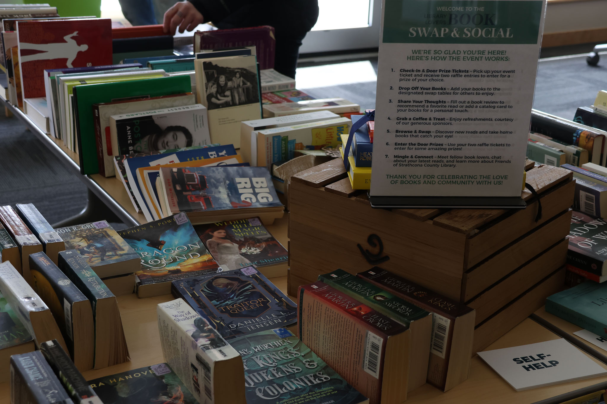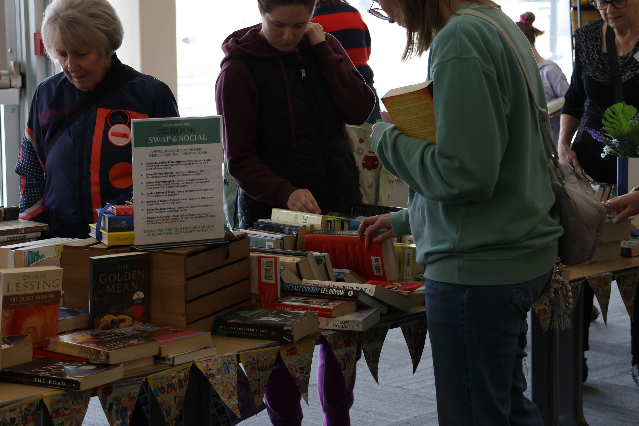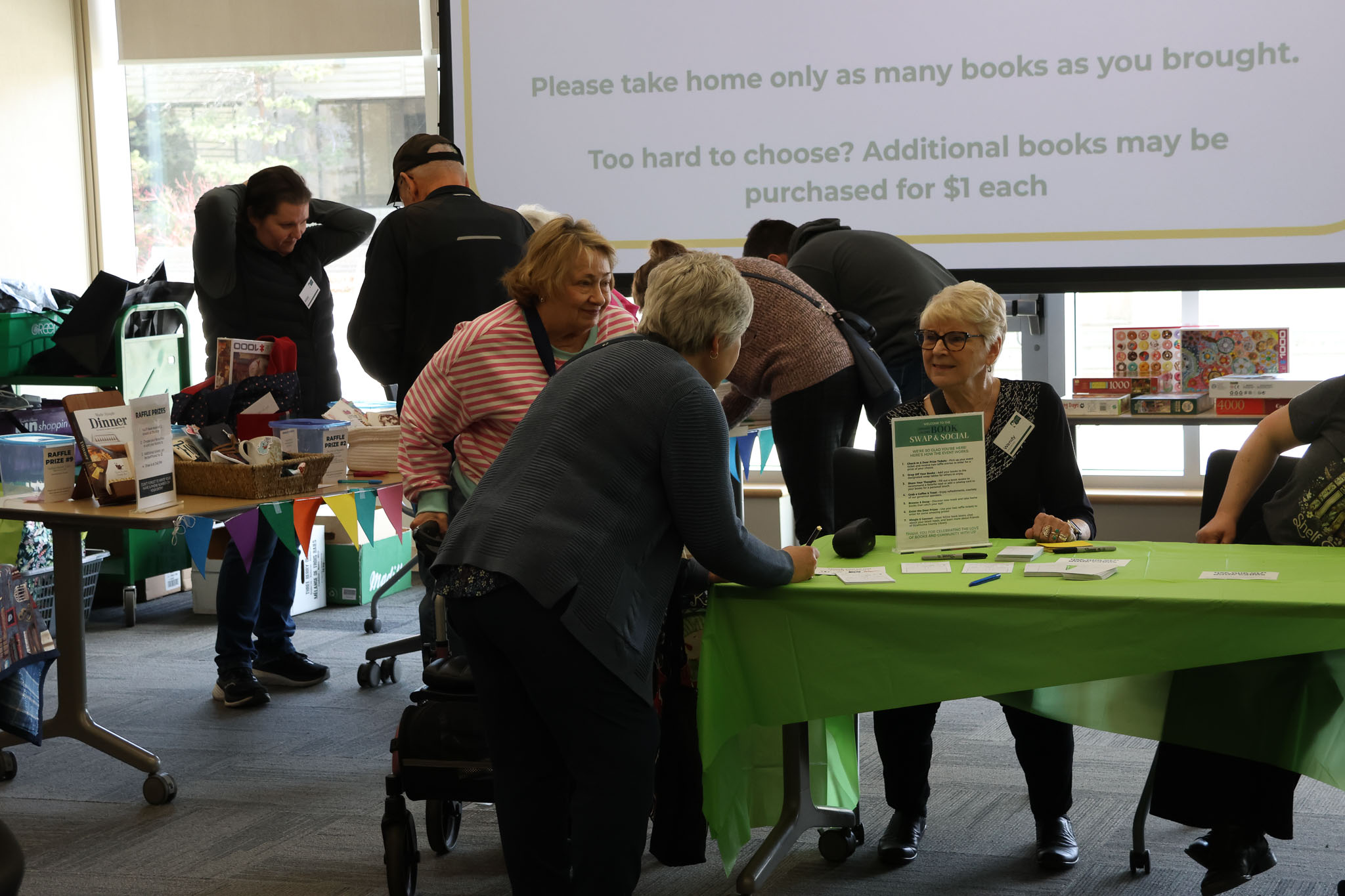 - A guest saying they were in no rush to leave because the books kept circulating. They said they could browse again and again and find something new.